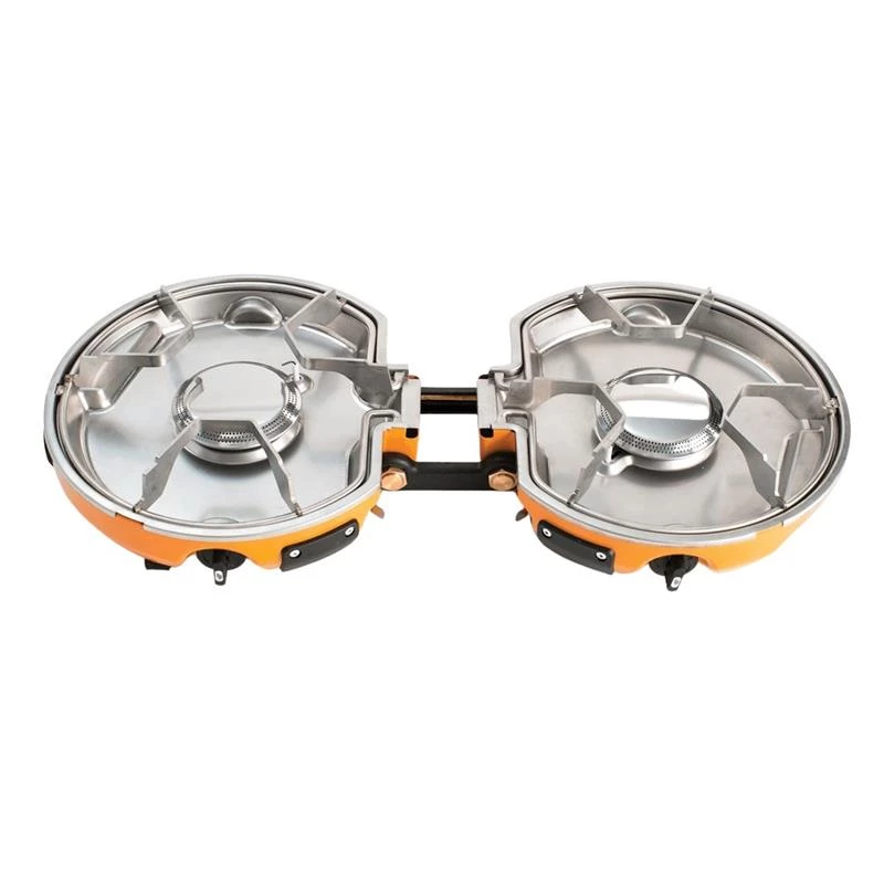 - Compact folding 2-burner stove.